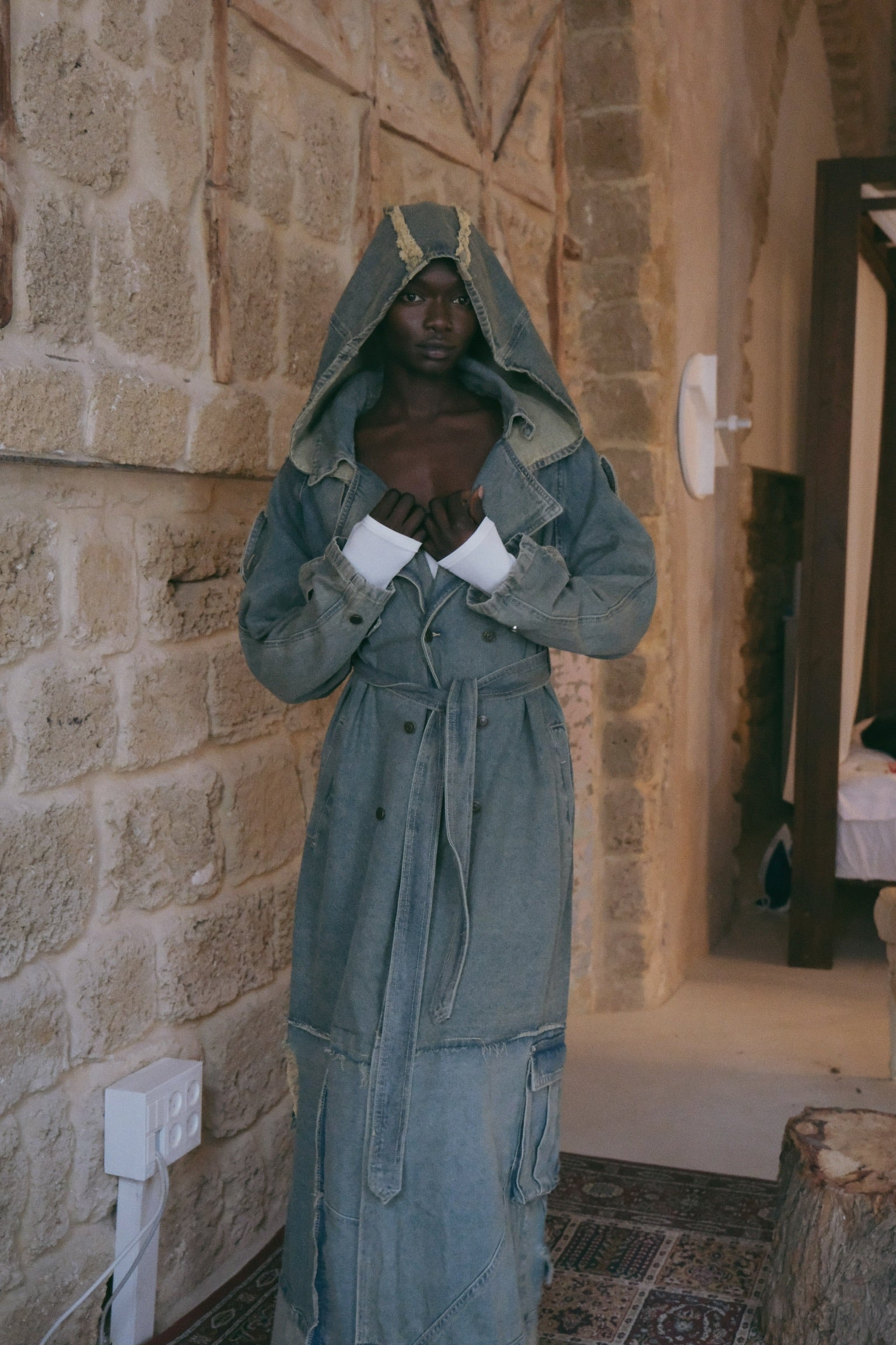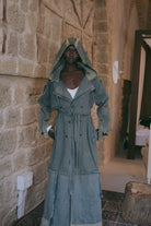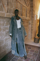 .מעיל דנים ארוך בגזרה אלגנטית עם נוכחות שקטה ובטוחה
