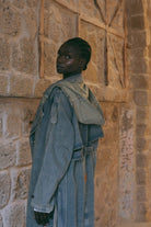 קפוצ’ון מובנה, צווארון רחב וחגורת קשירה יוצרים סילואטה מחמיאה וזורמת בגזרת