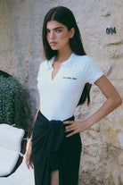 מעוצב בצבעי שחור ולבן על זמניים, מבד איכותי שמחטב ומחמיא לכל מבנה גוף